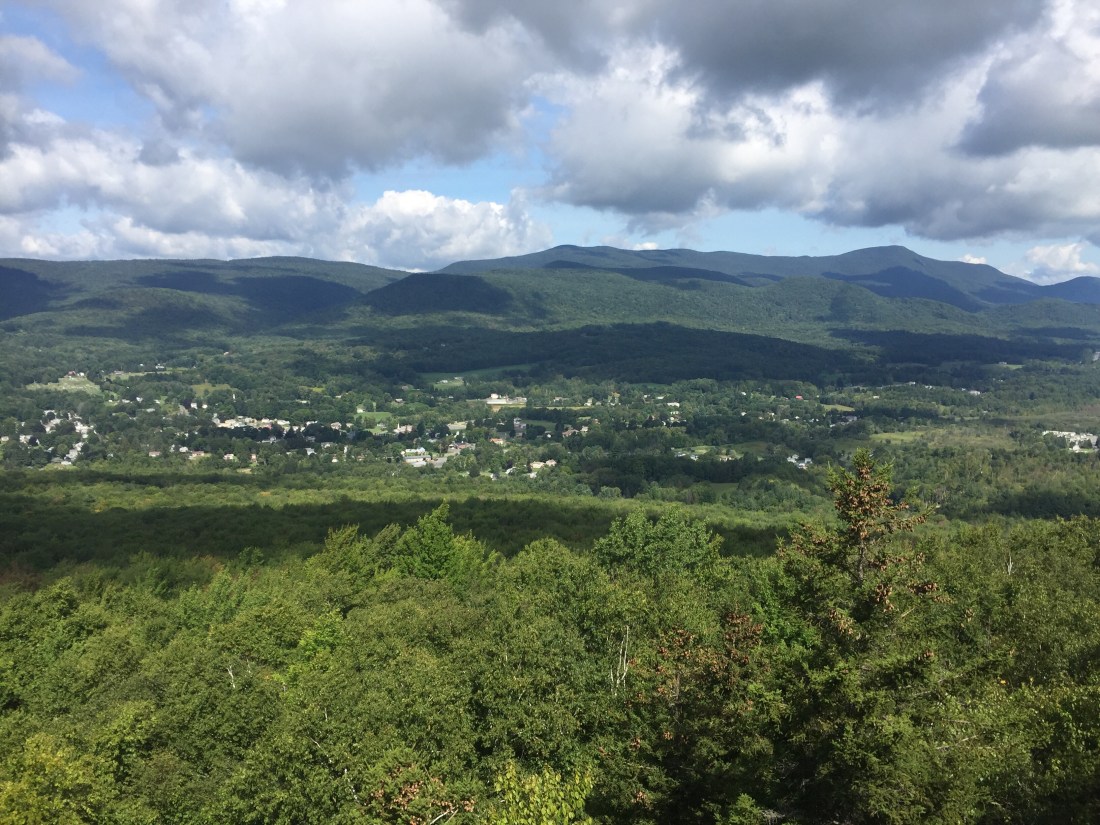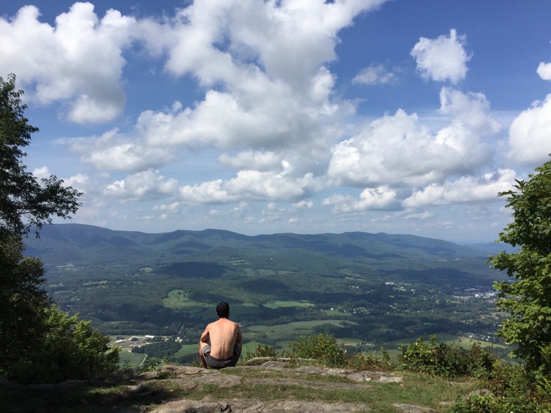 After trudging along through some humidity and rising temperatures, the trail took a steep dip into North Adams. After a mile of walking through small side streets and past cozy homes, I started the ascent of the highest peak in Massachusetts – Mount Greylock. It got hotter and hotter, until the weather app read 87 degrees and feels like 95. I’ve never sweated so much in my life. I stopped at a beautiful overlook and then plodded on toward the summit, putting off lunch because I couldn’t stand the thought of hiking uphill in the heat with a full stomach. I was pleasantly surprised to find a lodge at the summit that had a full kitchen. I ordered a burger, but it was still tough to eat given my stomach issues.