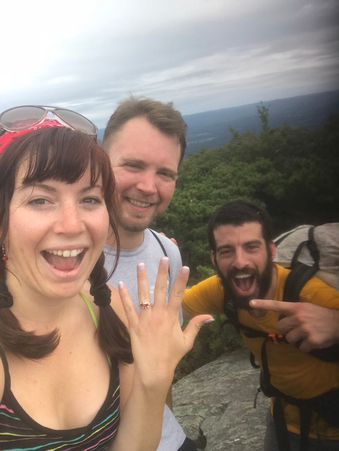 And then, something amazing happened. I passed a couple on one of the peaks. They were sitting intimately close together, face-to-face, holding hands. I gave a quick ”hello” as I walked past, not wanting to intrude on the moment. As I left, I heard her ask, “Is this an heirloom?” Instantly, I understood. “Did you two just get engaged?” She replied with an ecstatic “yes.” I cheered. They cheered with me. I offered to take their photo, and they were delighted. I proposed in Amsterdam a year ago with a professional photographer capturing the big moment, and knowing how much Rocío and I cherish those images, I went into full-on photoshoot mode: “Mountains in the background, stand lower, stand higher, hand on his chest, show that ring, kiss!” I am 90% sure that I didn’t come across as creepy. Their names were Steph and Zach, and they wanted to take a selfie afterward. I think this is one of my favorite pics on the trail: