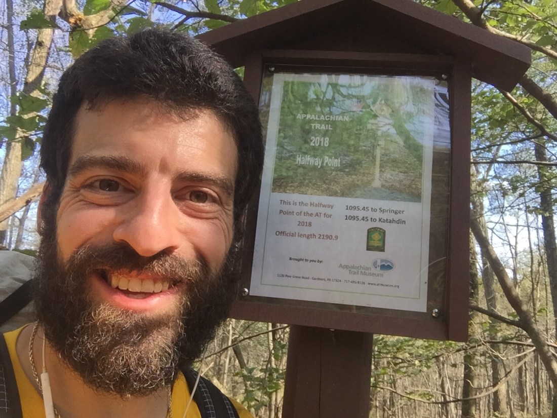 I reached the halfway point today! Apparently, the official sign moves each year due to changes in the trail: reroutes and additions change the trail length and, consequently, the halfway market. As a result, the sign is a bit underwhelming: